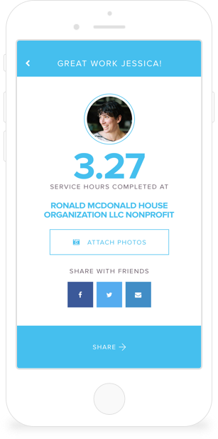 Connect with friends and check the leaderboard to see who’s tracked the most volunteer time.